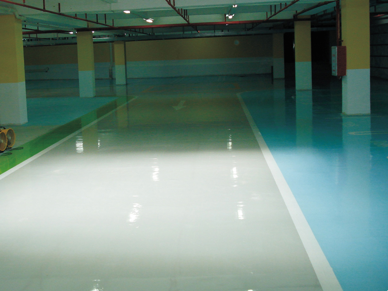 具有更優(yōu)良的附著力及滲透性更易施工,砂漿中涂厚涂都不發(fā)軟,高光澤度高耐磨,亮度可達(dá)72度,叉車碾壓無變形,耐水泡30天不泛白;